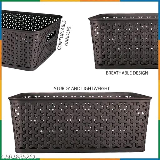 CONVENIENT STORAGE : Basket Plastic Multipurpose Storage Box is a set of 3 Storage baskets and handles, providing ample storage for your household items.