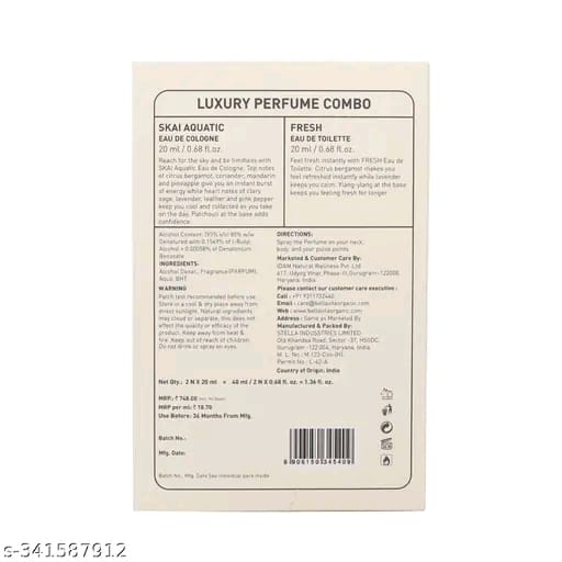 Name : Bella Vita Luxury Unisex FRESH+SKAI Perfume Combo for Men and Women 40 ML (Pack of 2 Items 20ML Each)
