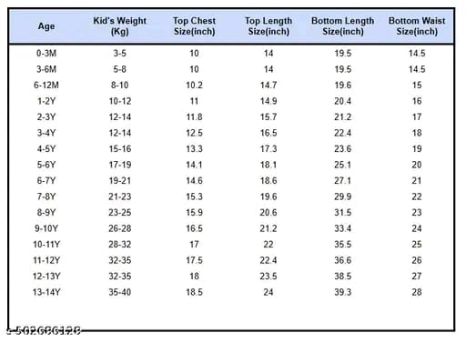13-14 Years (Top Chest Size : 33 in, Top Length Size: 23 in, Bottom Waist Size: 21 in, Bottom Length Size: 17.5 in)