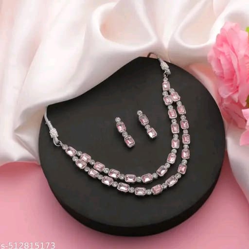 Multilayer Emerald White color necklace earrings Statement American Diamond,Indian Jewelry , Wedding jewellery