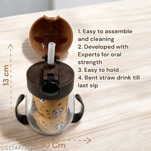 Name : Panda Sipper Water Bottle With Straw Milk Sipper For Kids Accessories For Girls And Boys (Black And White) - Plastic