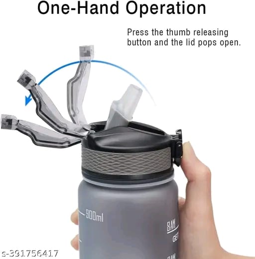PAYABLE 1L Sipper Water Bottle with Motivational Time Marker, Sipper Bottle for Adults, Water bottle for Gym, Office With Drinking Water Reminder