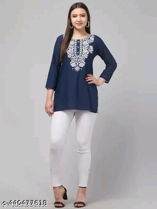 Timorous Fashion: Elegant Rayon Short Kurtis with Embroidery (XS-XXL)