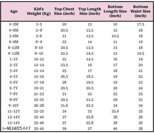3-4 Years (Top Chest Size : 12 null, Top Length Size: 17 null, Bottom Waist Size: 18.5 null, Bottom Length Size: 19 null)