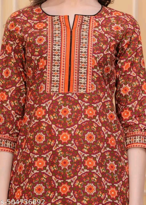 This PRABHODHINI4U women's printed rayon A-line 3/4 kurti features and maintenance highlighted round and 3/4 sleeves. It is a kurti which makes it light in weight plus it needs low maintence. You can save it for rush moments or add it to your travel bag. Perfect for both casual and dressy occasions, this versatile piece is a must-have in any woman's wardrobe. This women's rayon kurti features delicate rayon embroidery for a feminine and stylish look. Perfect for pairing with jeans or leggings for a casual yet chic outfit. This women's rayon kurti features intricate features embroidery on soft Rayon fabric, making it a stylish and comfortable choice for any casual occasion. Pair it with your favorite jeans or leggings for a chic and effortless look. This versatile piece can easily transition from party to reception, making it a practical addition to your wardrobe.